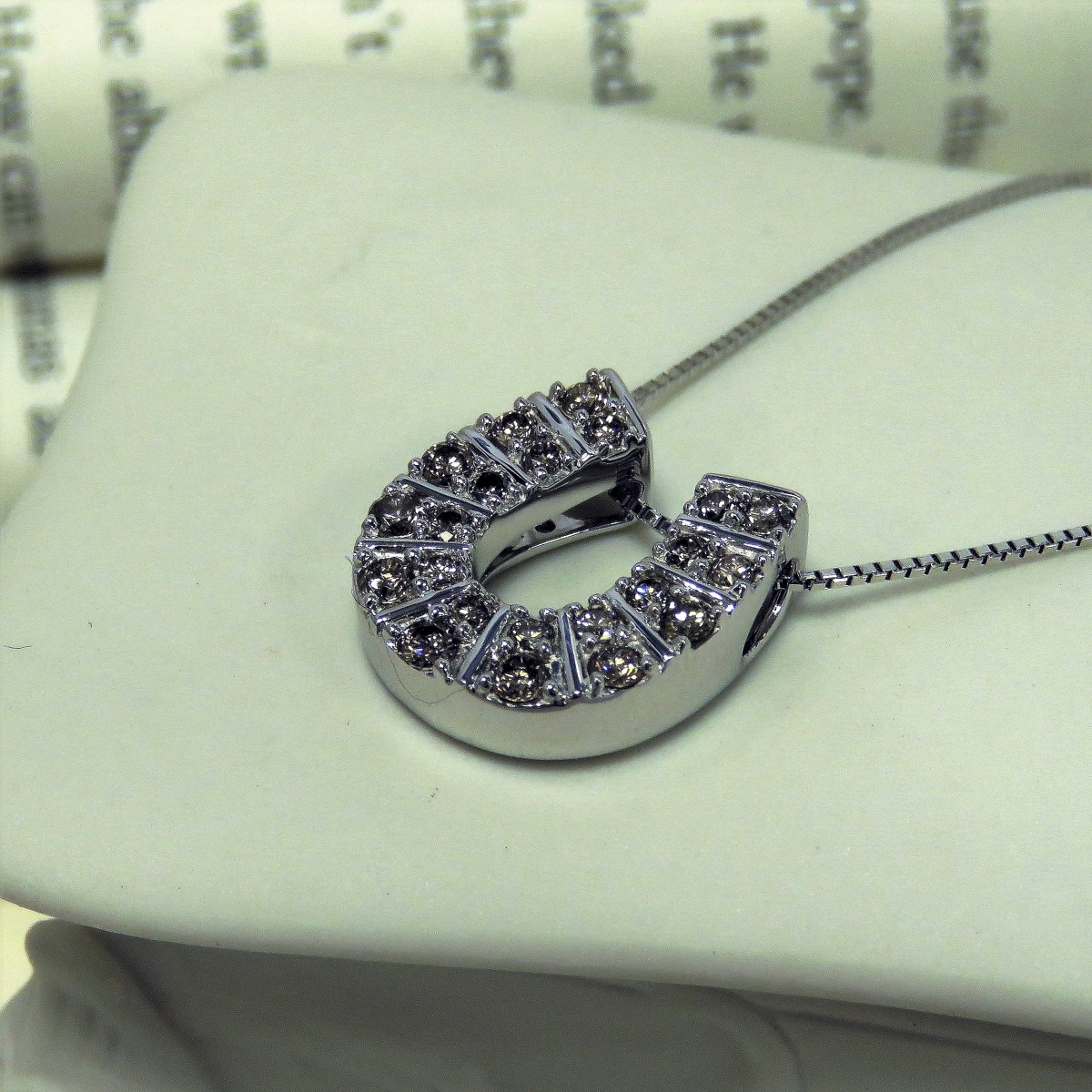 K18WG ブラウンダイヤモンド 馬蹄ネックレス