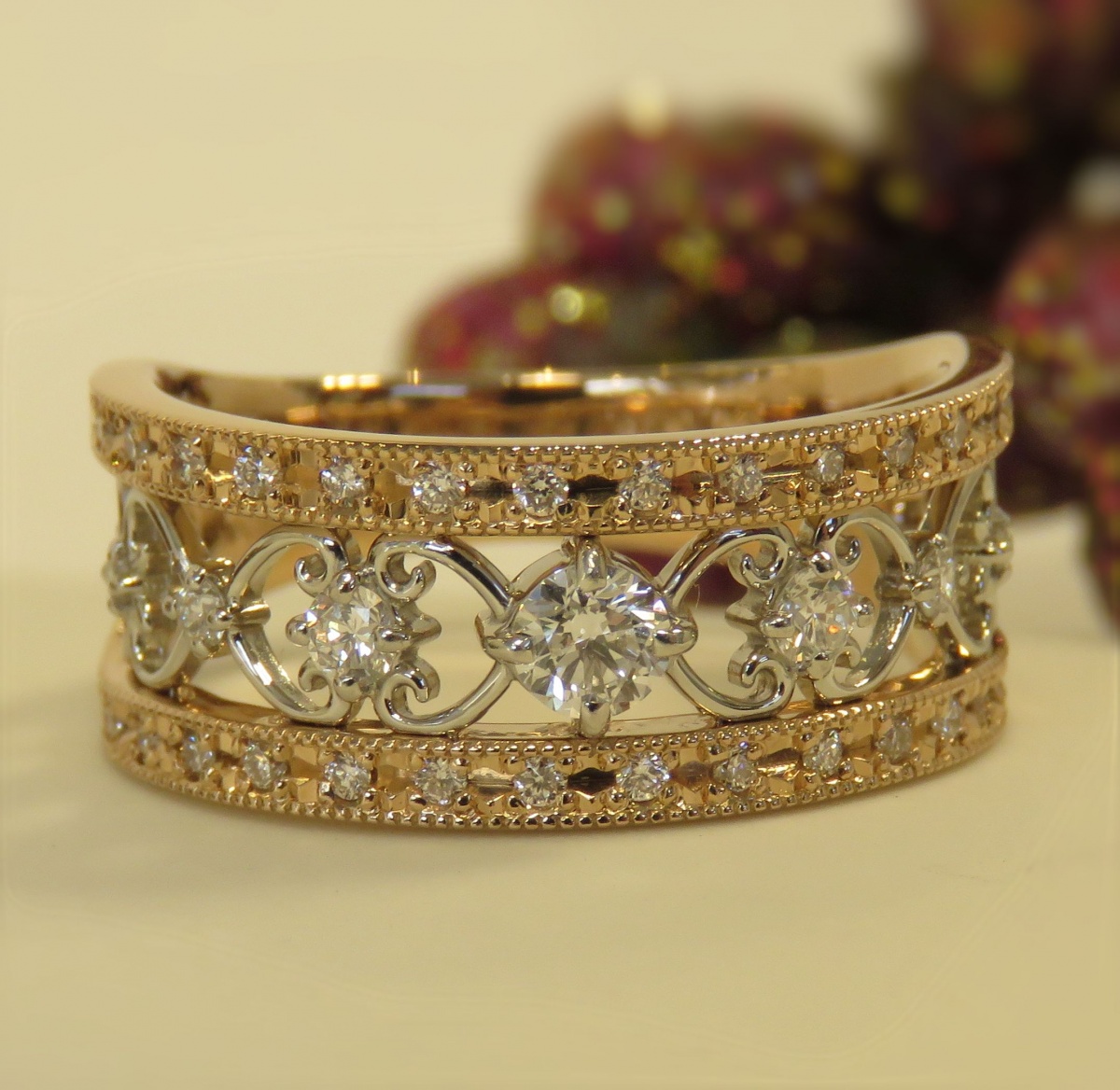 ピンクゴールドとプラチナの白の組合せが女性らしいジュエリー
